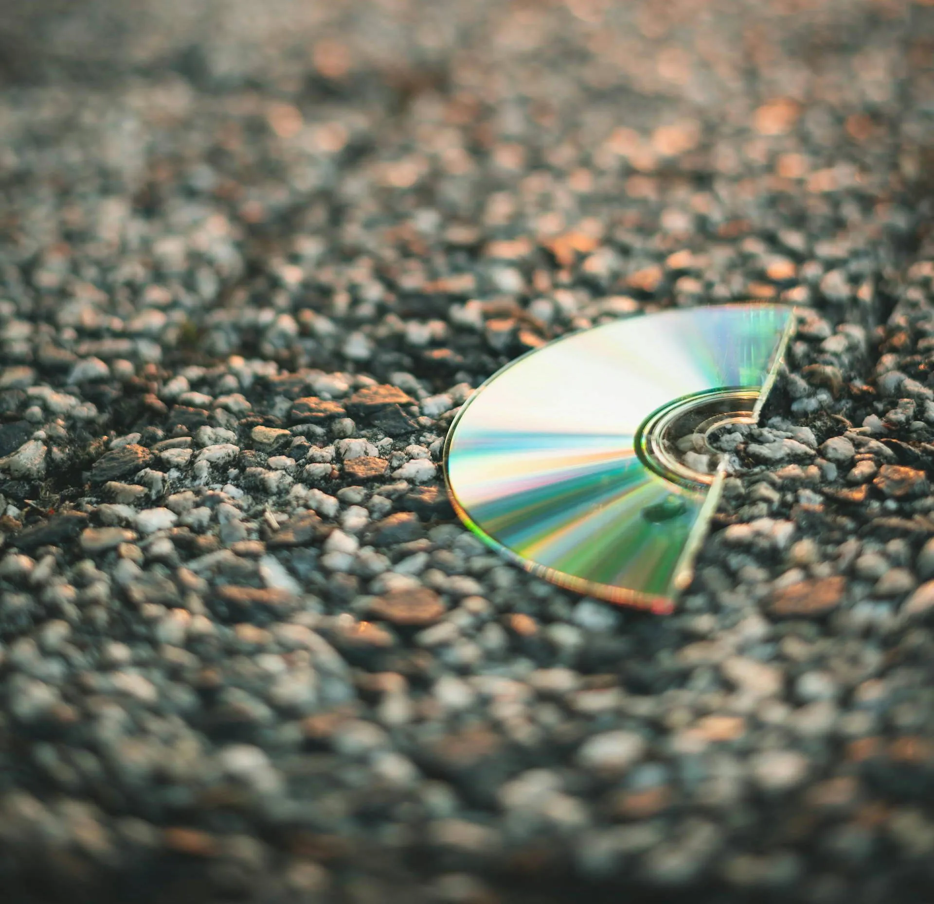 These broken CDs symbolize more than just the failure of a physical object; they represent the fleeting nature of digital storage in an ever-evolving technological world. As digital media moves to cloud storage and streaming, the CD, once revolutionary, is now a relic of a time when physical discs were the primary means of accessing music and data. Though broken and unable to fulfill their original purpose, these CDs stand as a reminder of the role they played in shaping how we once interacted with technology. They are artifacts of a not-so-distant past, now rendered fragile and obsolete in the face of progress.